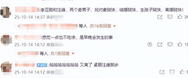 汪峰来了全得是亚军 然而,网络舆论场似乎并不在乎这些过程中的体面,它像一个巨大的放大器,只聚焦于李亚鹏人生的“失序”后果,却选择性地忽视了他履行“担当”的细节。 离婚消息一出,他声明下的评论区,迅速变成了一片“恶心”的景观,各种恶意的猜测甚嚣尘上,“离婚炒作”的论调层出不穷,对于海哈金喜,不少评论认为她的离开是一种“解脱”,断言两人“不是一路人”。