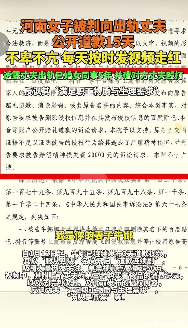 这场道歉连续剧是怎么开始的时间回日那天,牛娜在抖音平台上发布了第一条道歉视频,标题写的很简单:我认错,服从判决。